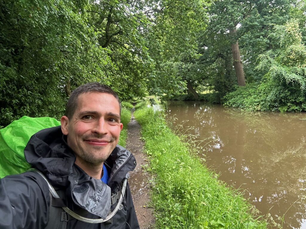 It was a wet damp morning but conditions became more unsettled throughout the afternoon with blast of beautiful sunshine and patches of thunderstorms passing over. Where do you go when you are on a canal path when there is lightning. Trying to stay away from the water but away from trees to isn’t the easiest on the narrow paths. I did however peg out my hiking poles away from me as I tried to shelter a little from the storm. Probably wouldn’t have done much and I’m glad that I didn’t find out if it would have worked to divert any bolts.