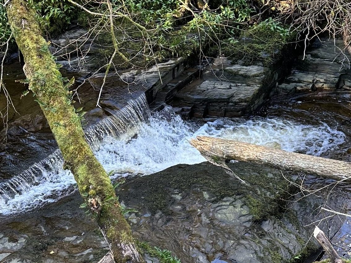 There is a recess behind the falls, a little rocky trail leads to a flat area in the softer rock. S. ince I hadn’t seen another should I felt it was sensible to give it a miss. With no signal in the gorge off the Henrhyd fault I urged on the safe.