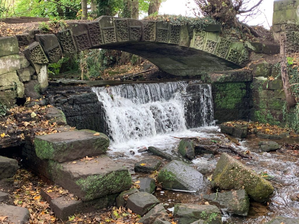 A cute little bridge and the weir beneath which looks like it has stood for an awfully long time. The remains of what was once a working mill at the Sitting Mill site near Rugeley.