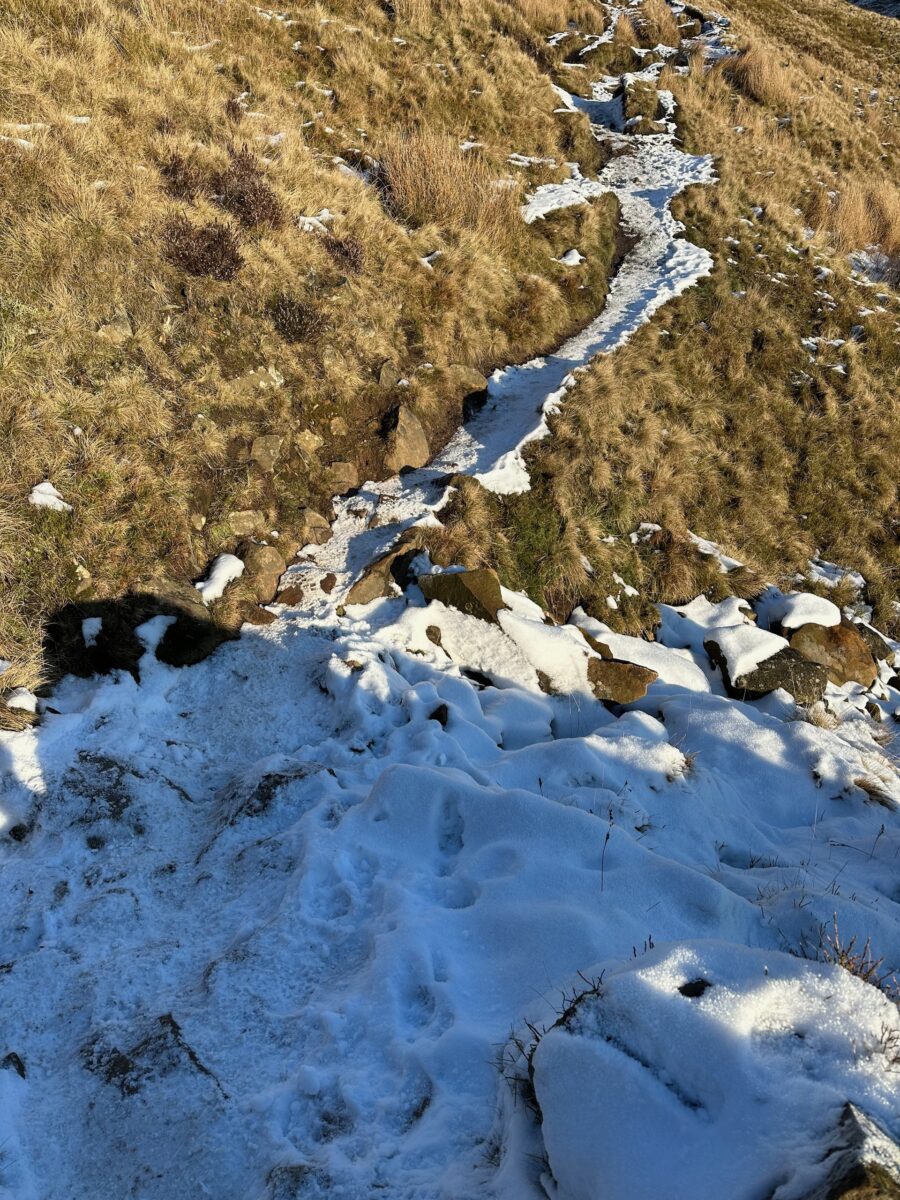 One thing I have noticed on a lot of my hikes recently is that I seem to be going in the opposite direction to everyone else. This one was no different and it might not have been the best of choices, it meant I was taking on the steeper paths down hill which in snowy conditions is not a great idea. I could tell by the faces of those I passed on the steps from the Pendle Hill summit that they also maybe found it a little strange.