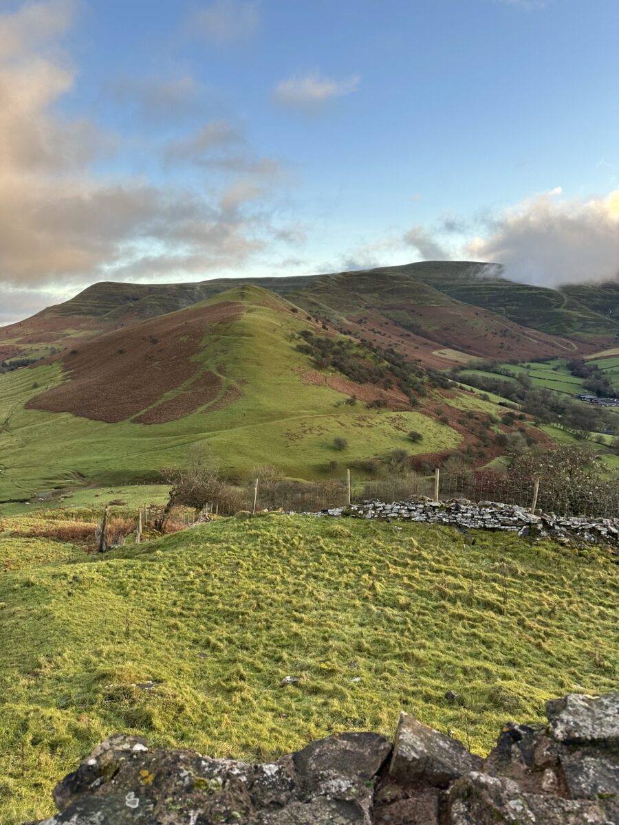 Watching the clouds fly through the valleys and up over the mountain whilst staying protected from the icy winds which had picked up a little point at this point.