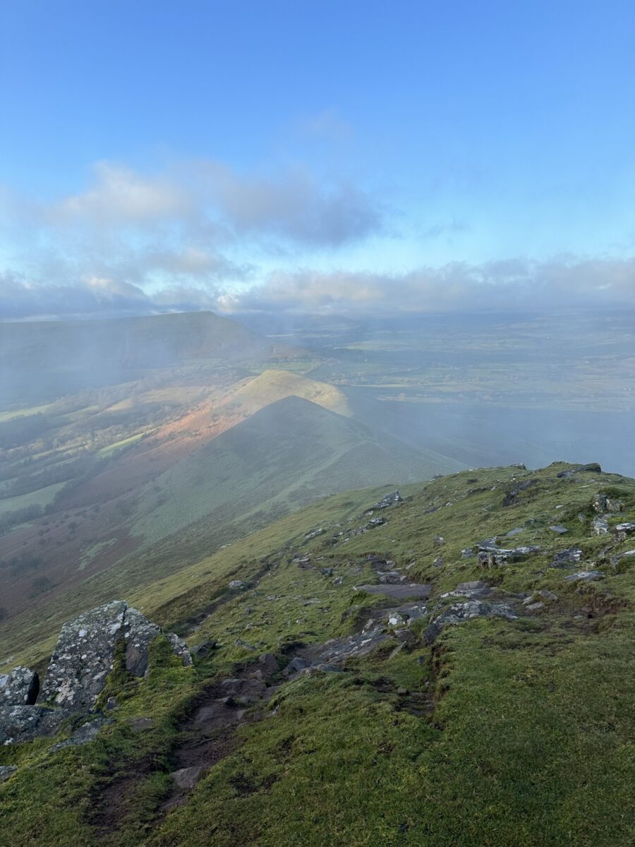 it’s a rather flat and boggy trek across from Waun Fach to the final Nuttall I was looking at completing. It is rather exposed and the cold December winds were pretty harsh but at least they pushed the clouds through offering brief glimpse of the surrounding landscape.