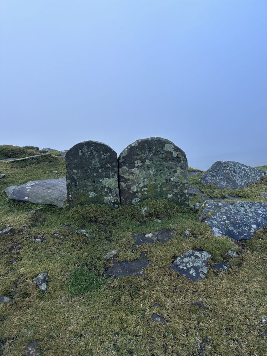 I can’t lie I was slightly throne by these boundary stones. Until I got back home I honestly believed that it was a couple of graves stones stood at a few thousand feet. Really though the are marking an ancient boundary between to places that are, well, no longer legible.
