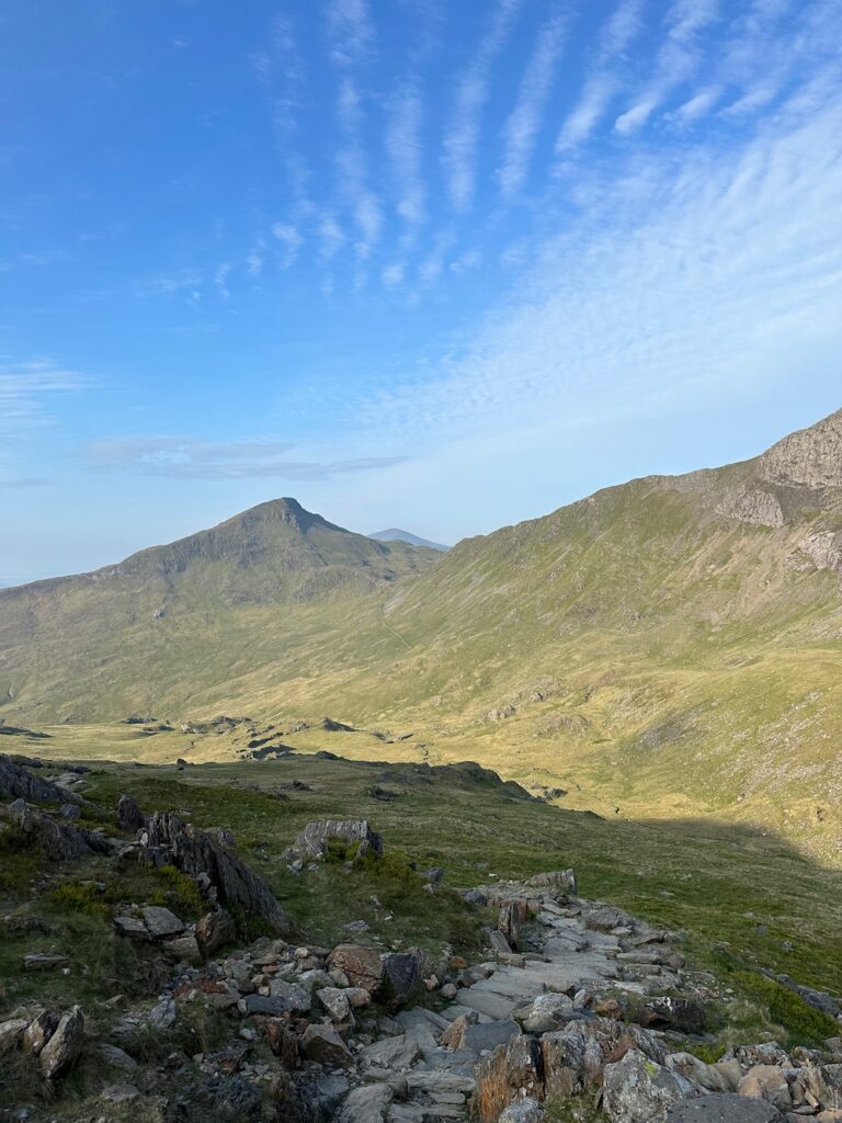 An absolutely beautiful morning for taking on the highest mountain in Wales. For me it was the last of the National Three Peaks to check off my list. I might not have done them over a 24 hour time period like the official challenge. Still all three in less than 2 months isn’t bad.