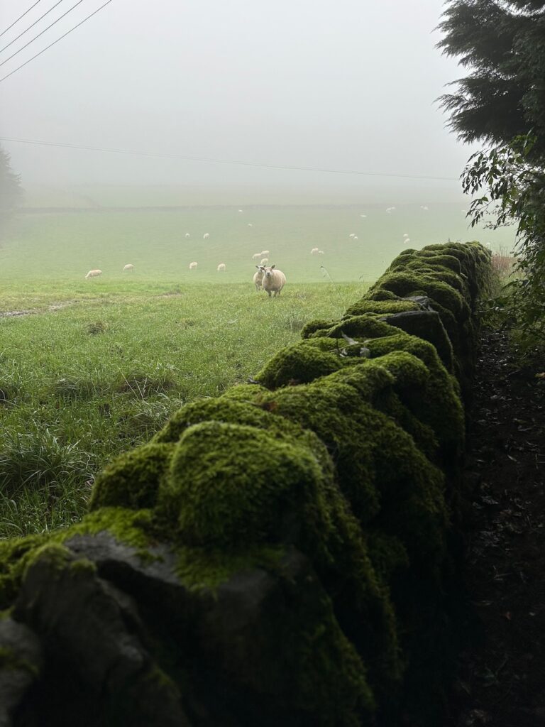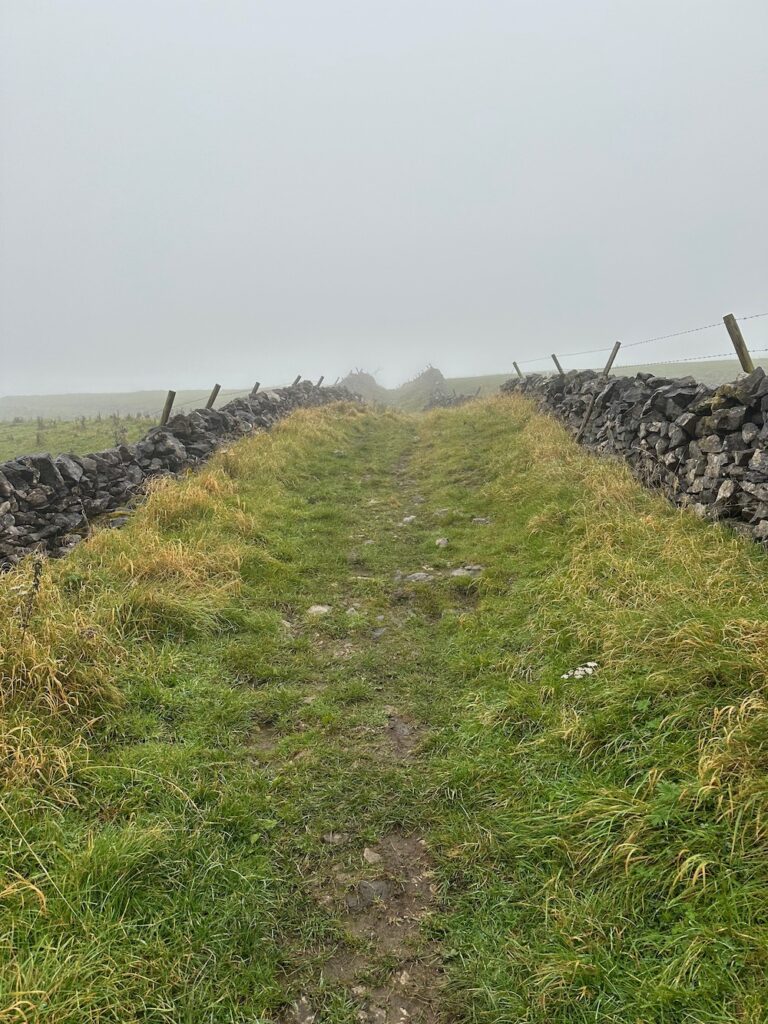 A lot of crossing through foggy farm fields made up the first section of the hike. There is something about walking into a field and not quite knowing what animals are fenced inside. Luckily it was mostly just sheep I am not a fan of crossing through fields with cows. They are huge animals, and surprisingly fast.