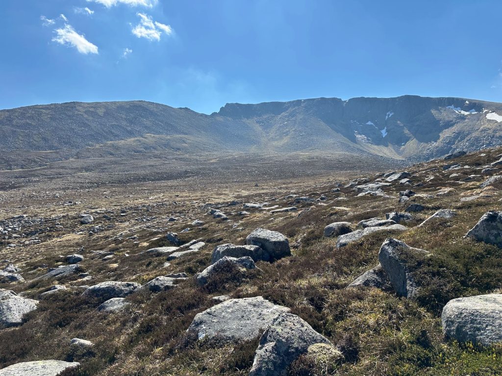 The first couple of miles are the steepest. As you head south from the Ski Centre the route heads towards the Laurig Ghru valley. The path is pretty simple underfoot as it sweeps around towards Ben Macdui.