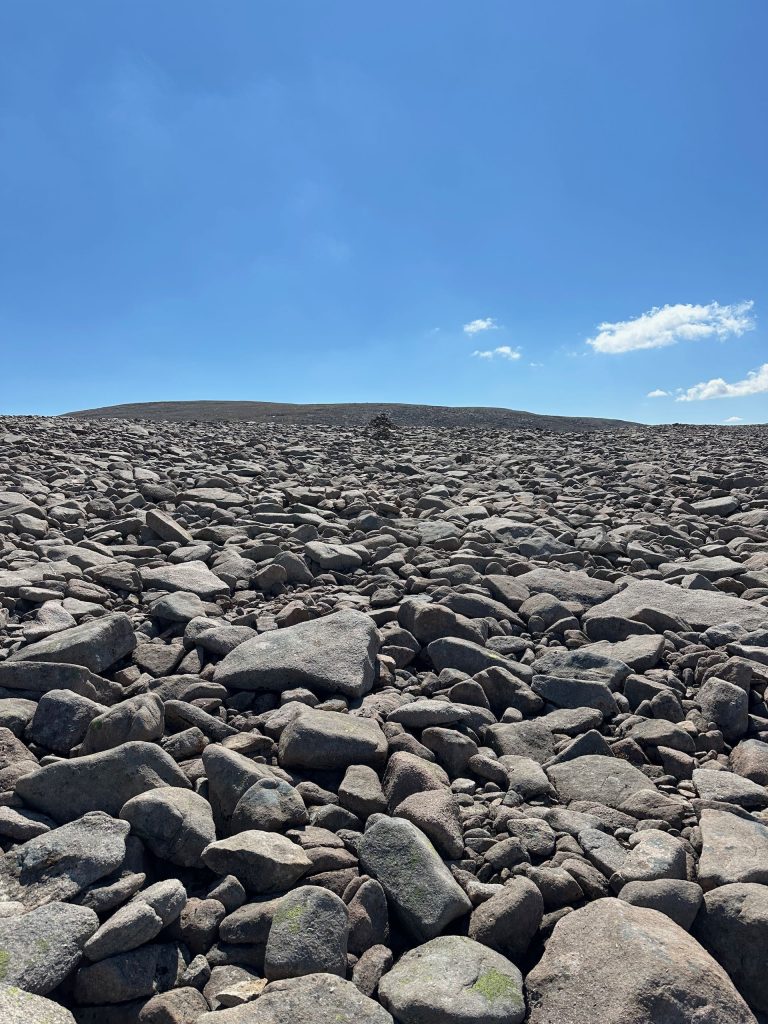 For the last mile and a half to the summit the path does flatter out considerably as it crosses over the rocky plateau. It’s not the easiest underfoot and didn’t really mix well with my faster pace, it forces you to focus a little more on the balance of each step as each little boulders becomes unpredictable in stability.
