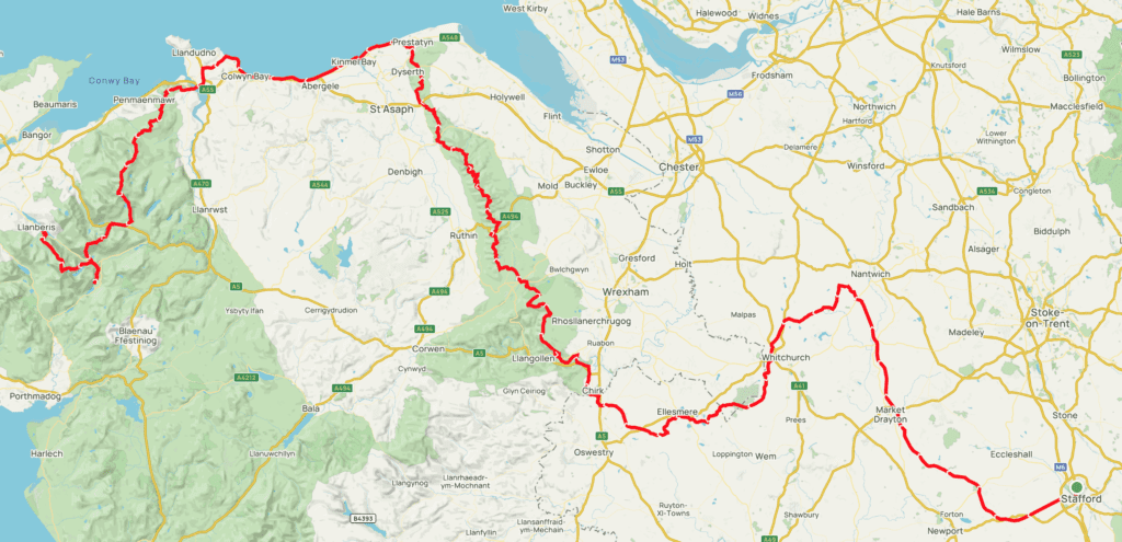 Version one of a route from Stafford to Snowdon