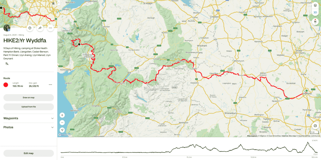 Planning out a route for a nine day hike, having a starting point in Staffordshire and wanting to finish on the highest mountain in Wales. Isn’t an exactly easy task. It isn’t exactly a route that has been walked a lot of times.